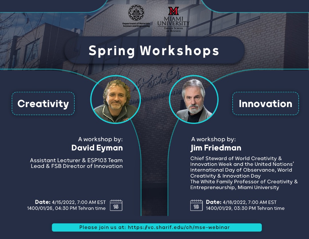 The Spring International Workshops of the School of Engineering and Materials Science in collaboration with the University of Miami will be held on Friday, April 16 and Monday, April 19. Participation in these workshops is free for the general public. With respect Alizadeh Vice Chancellor for Research and International Relations, Faculty of Materials Engineering and Science