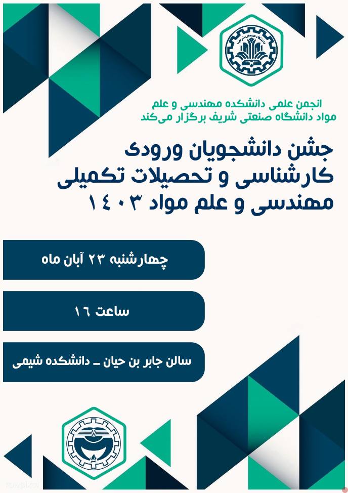 برگزاری جشن ورودی دانشجویان ورودی۱۴۰۳ دانشکده مهندسی و علم مواد