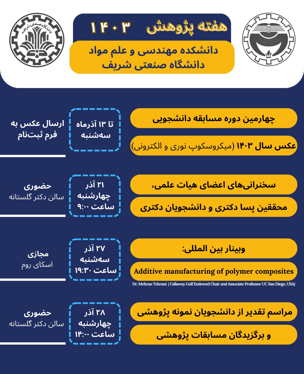 هفته پژوهش در دانشکده مهندسی و علم مواد دانشگاه صنعتی شریف در یک نگاه