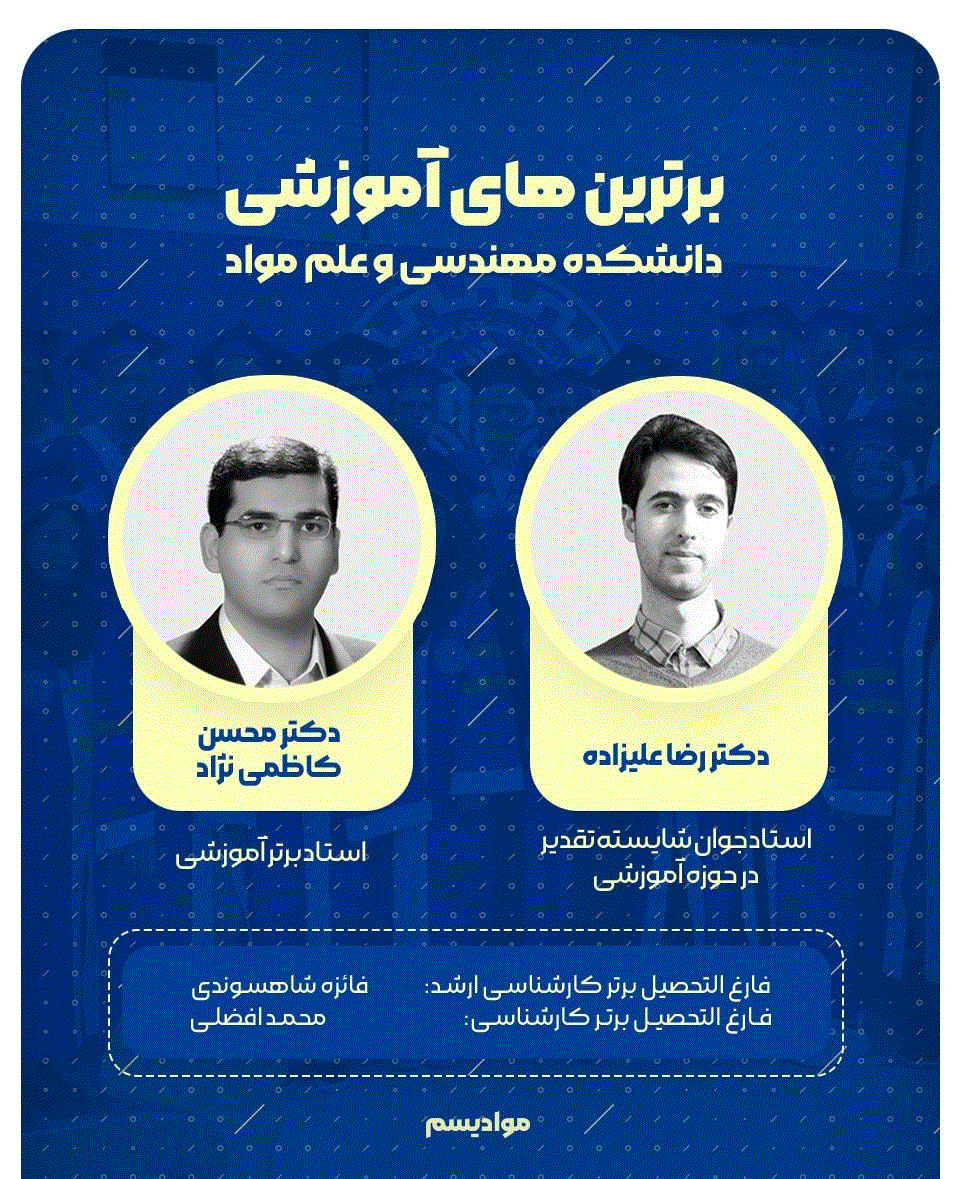 استاد برتر آموزشی: دکتر محسن کاظمی نژاد استاد جوان شایسته تقدیر در حوزه آموزشی: دکتر رضا علیزاده